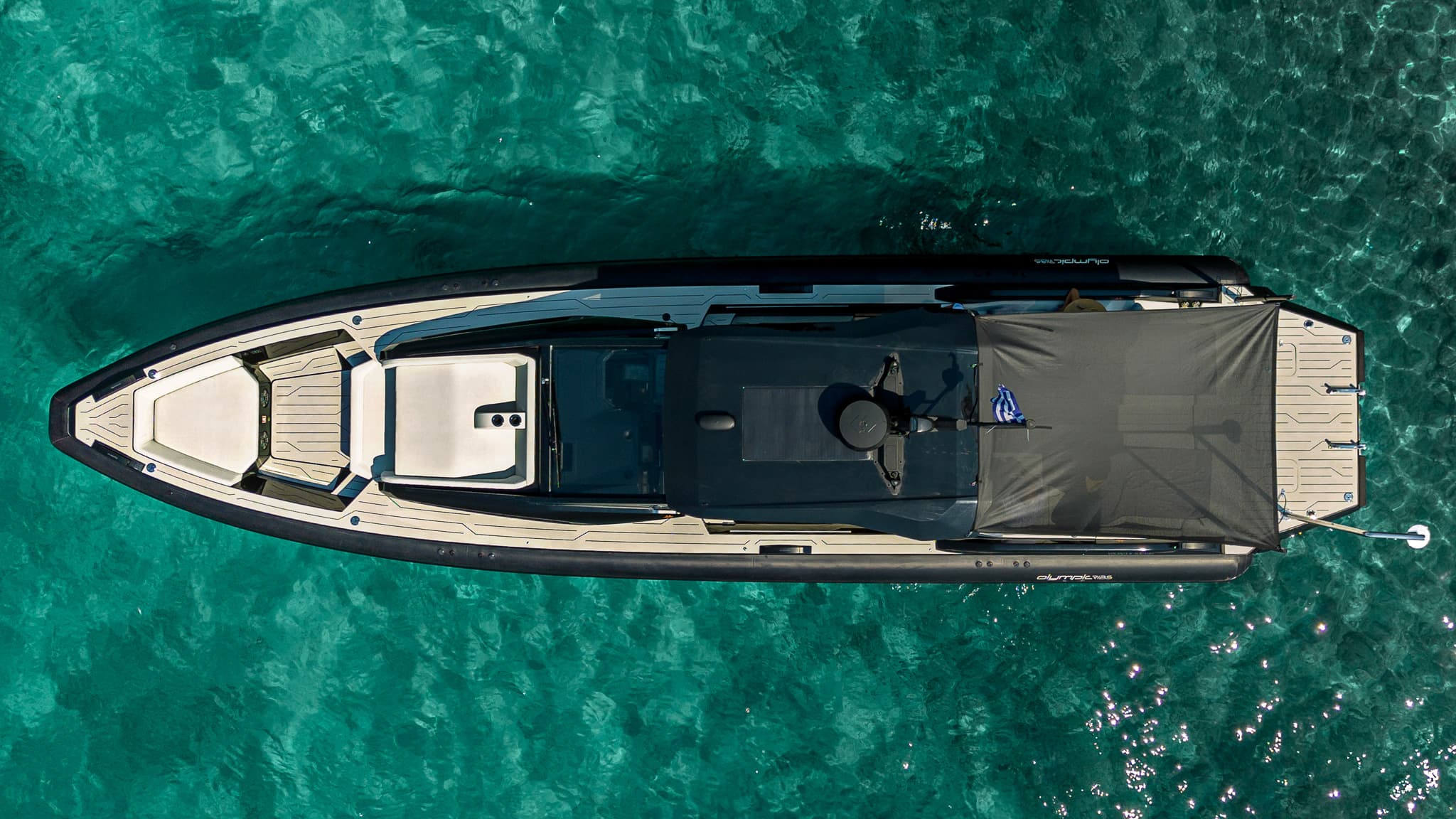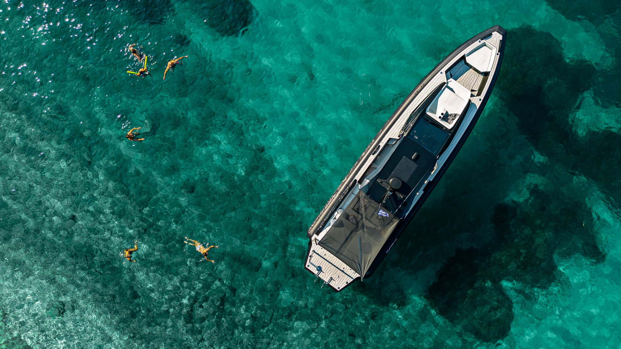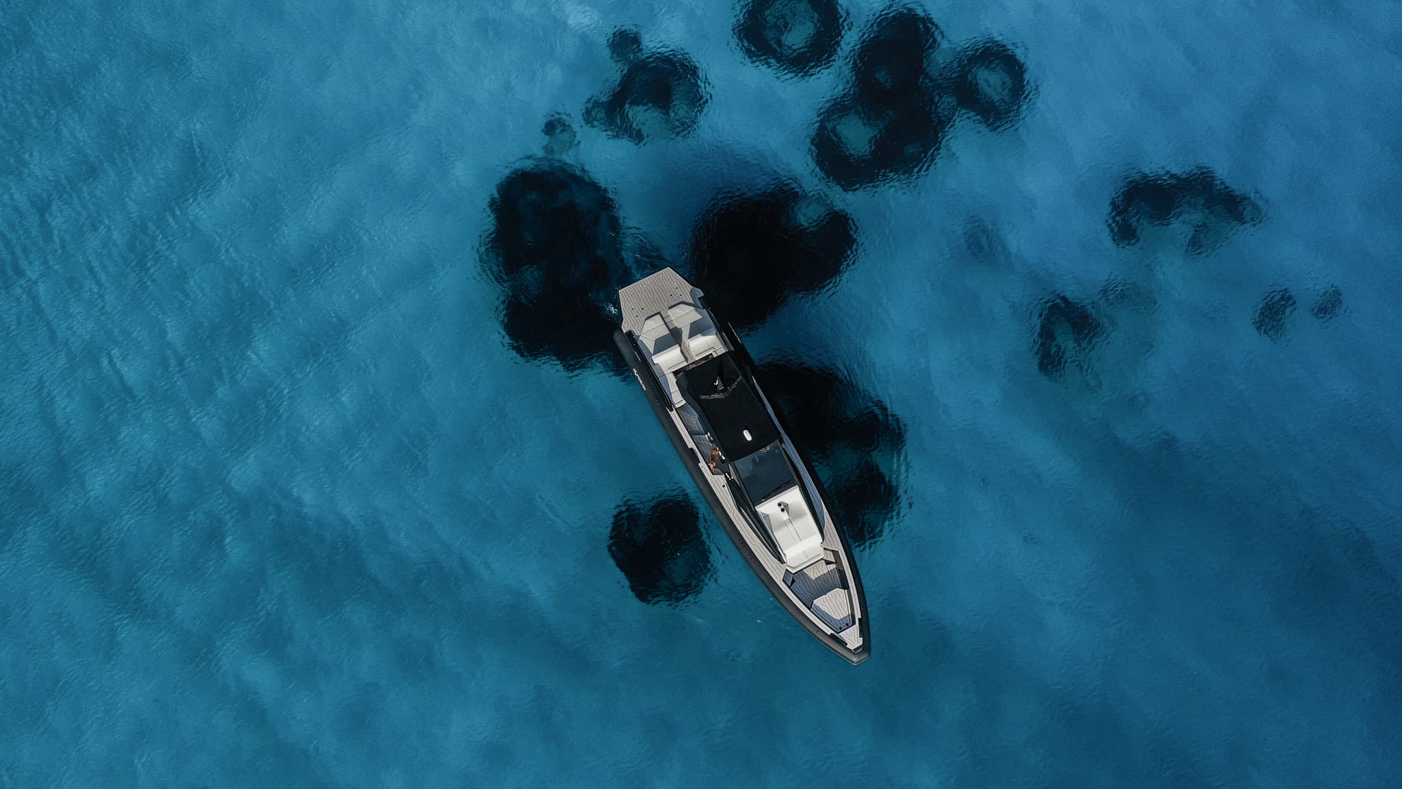 A flagship offshore RIB featuring an extended aft platform that increases usable deck space, improves boarding, and creates a large sun lounge.